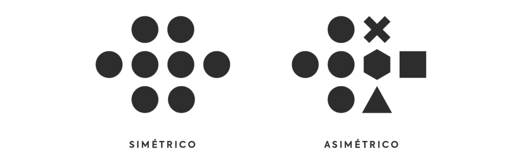 El equilibrio asimétrico ocurre cuando los elementos no son idénticos pero logran balancearse visualmente.